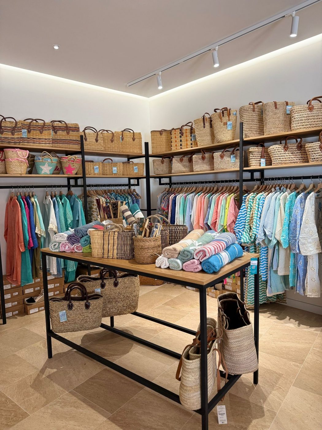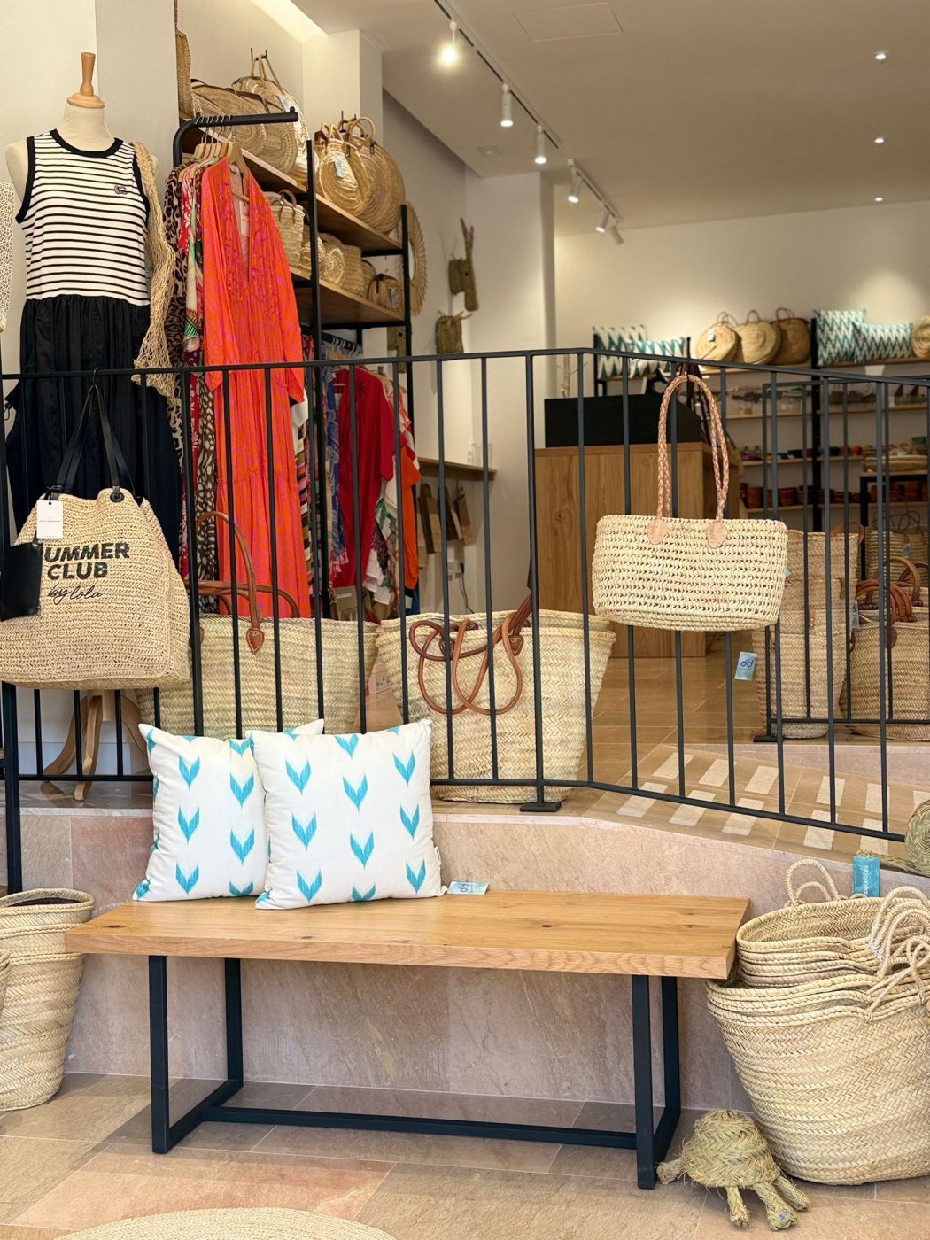 Los materiales naturales —fibras, tonos suaves, texturas— conectan directamente con el estilo mediterráneo y con el tipo de producto que se expone. Esta coherencia es clave en el diseño de interiores comerciales, donde cada decisión suma para crear una experiencia clara, ordenada y agradable.